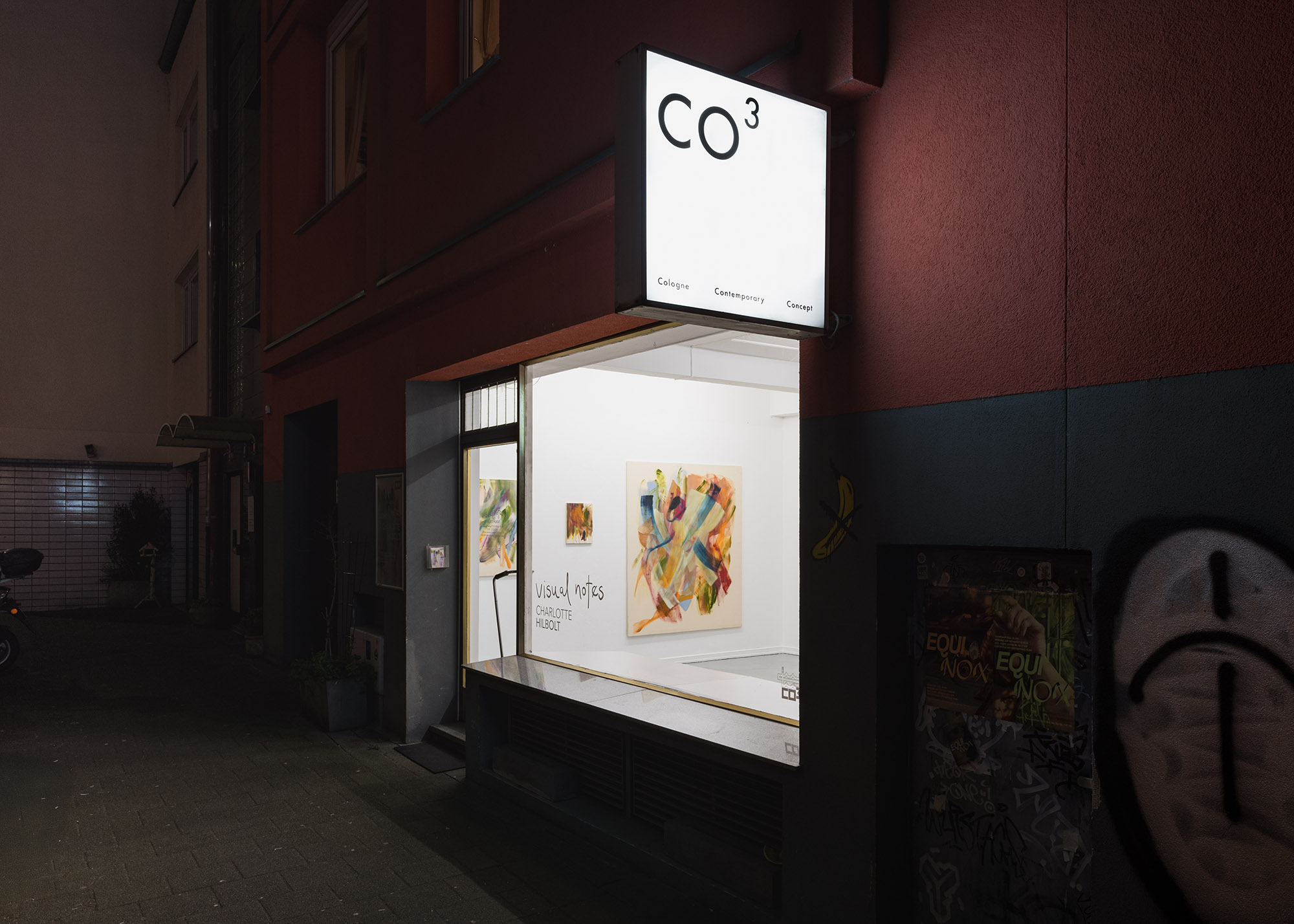 Notizen werden normalerweise schriftlich verfasst – nicht so hier. Die Künstlerin und Malerin Charlotte Hilbolt nennt ihre Solo Ausstellung im CO³ in Köln „visual notes“ und präsentiert Malereien auf Leinwand und Papier. Die Bilder lassen Phänomene von Schriftbildlichkeit aufscheinen, die jedoch nicht von der Schrift herstammen und keinen Charakter von Kalligraphie haben, sondern die Aufmerksamkeit auf die Wahrnehmbarkeit des Visuellen lenken.
