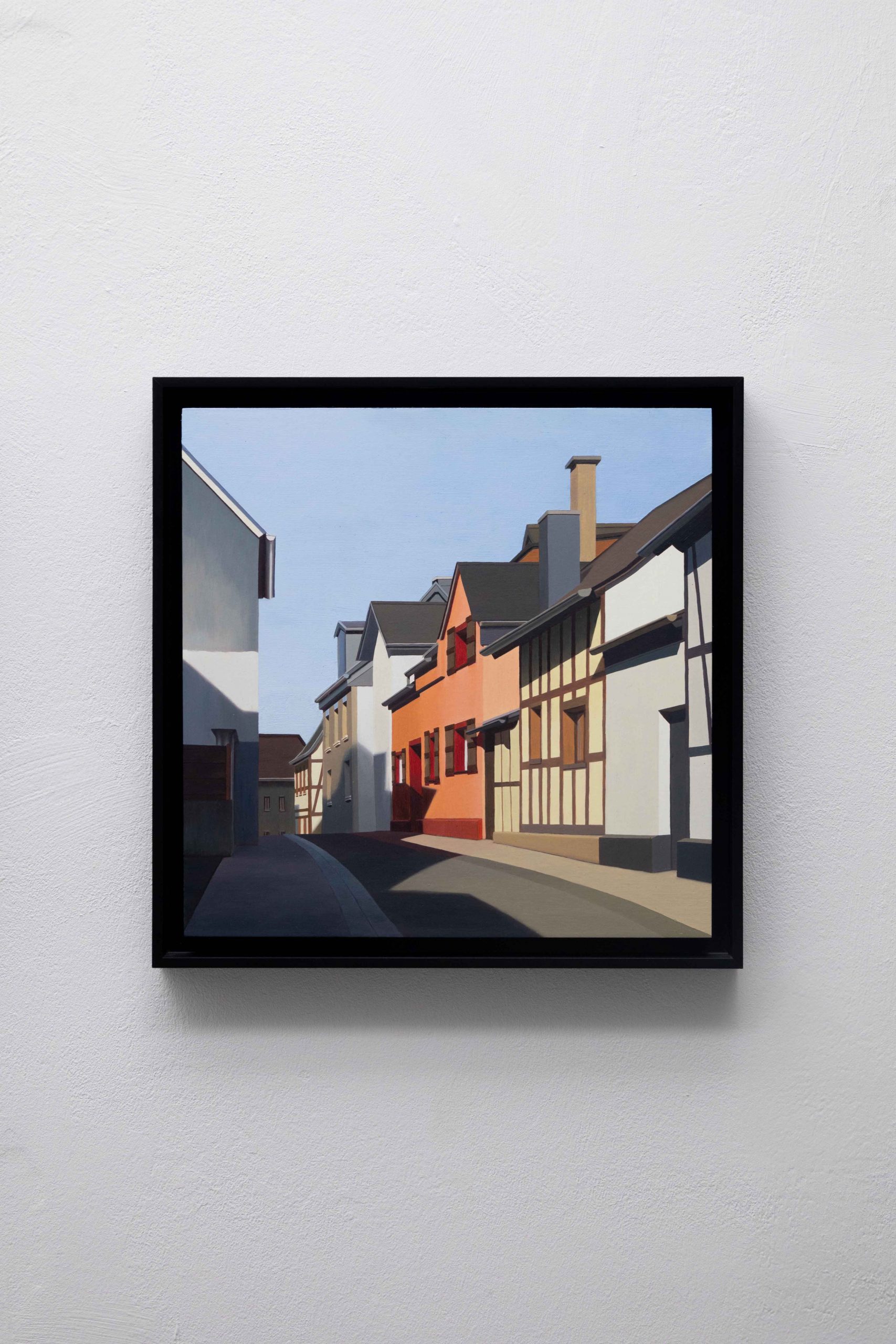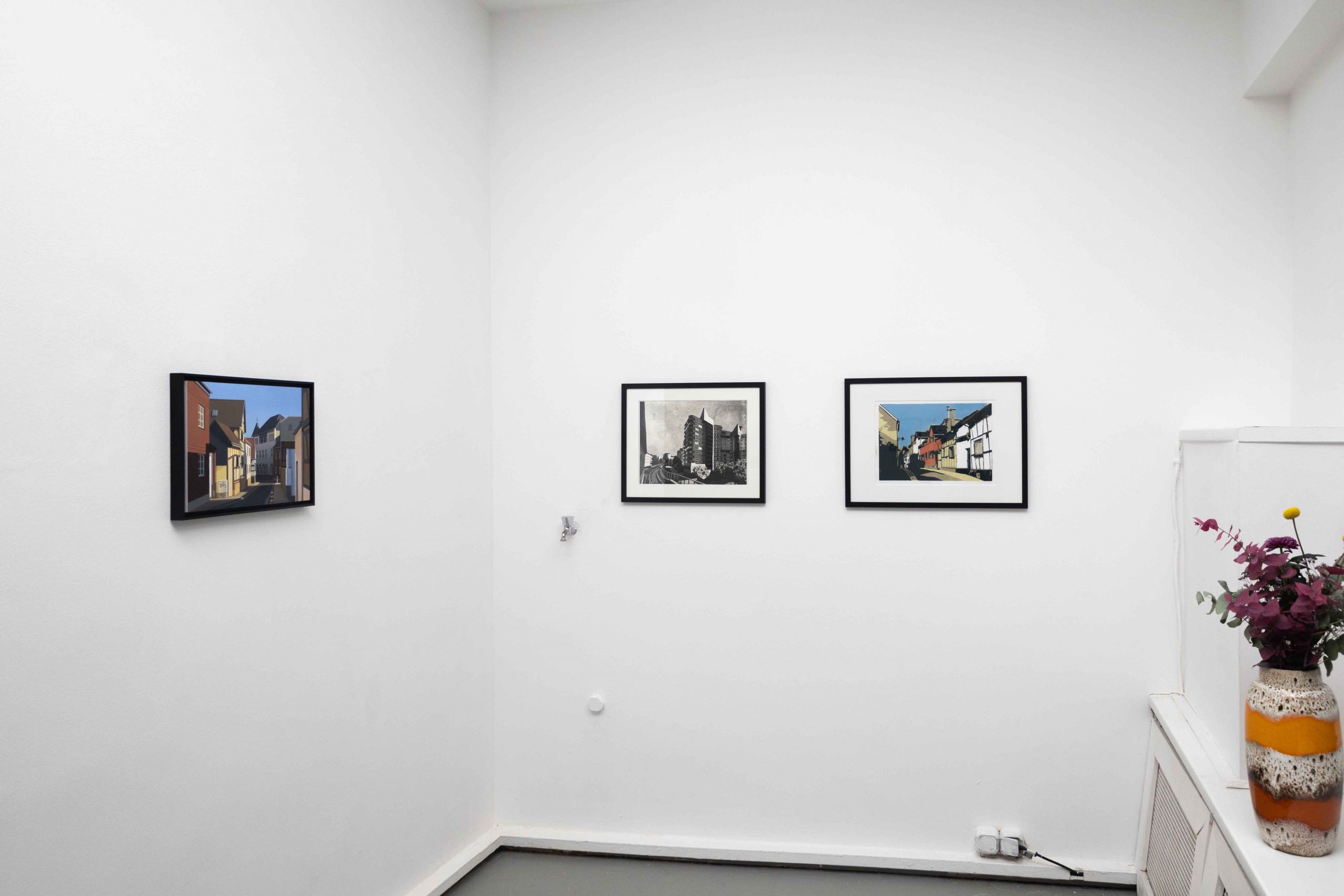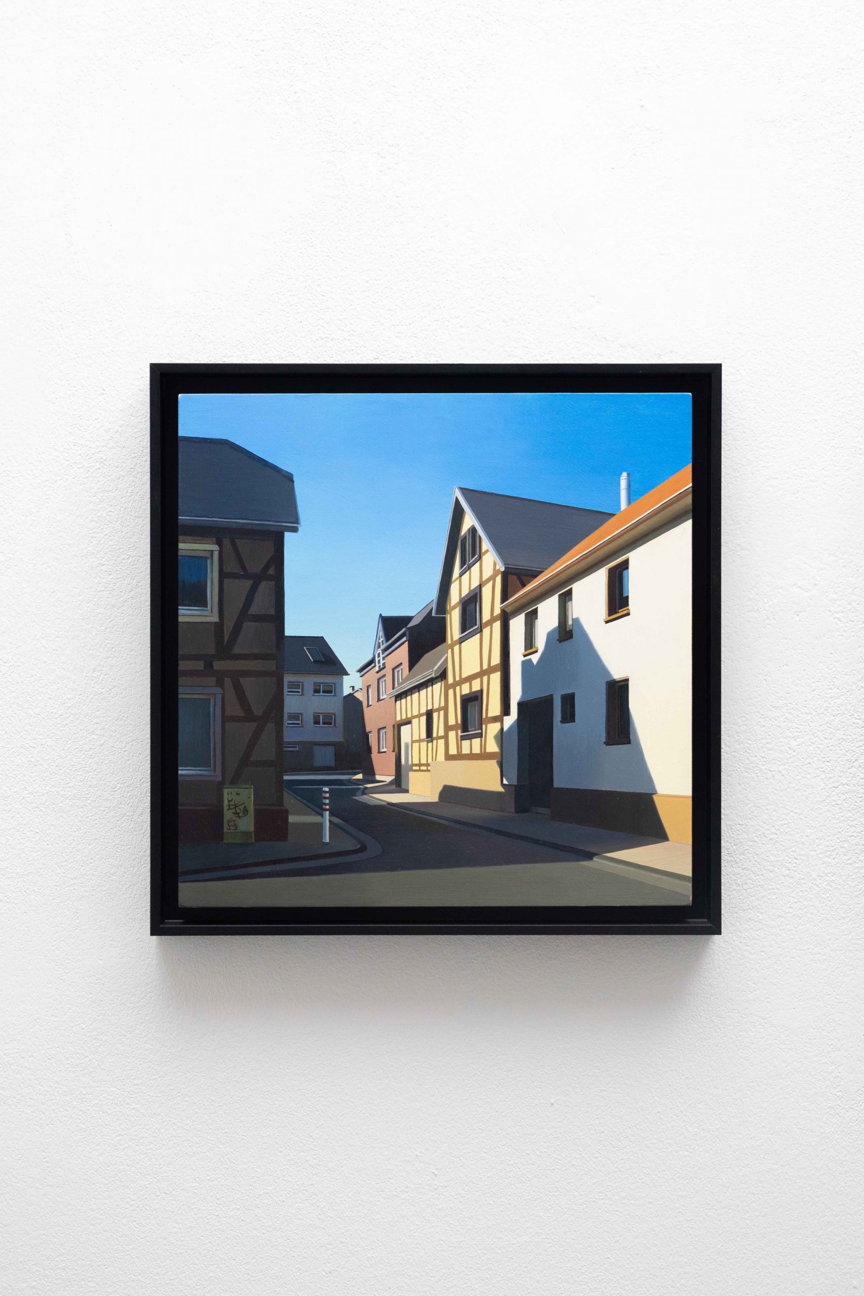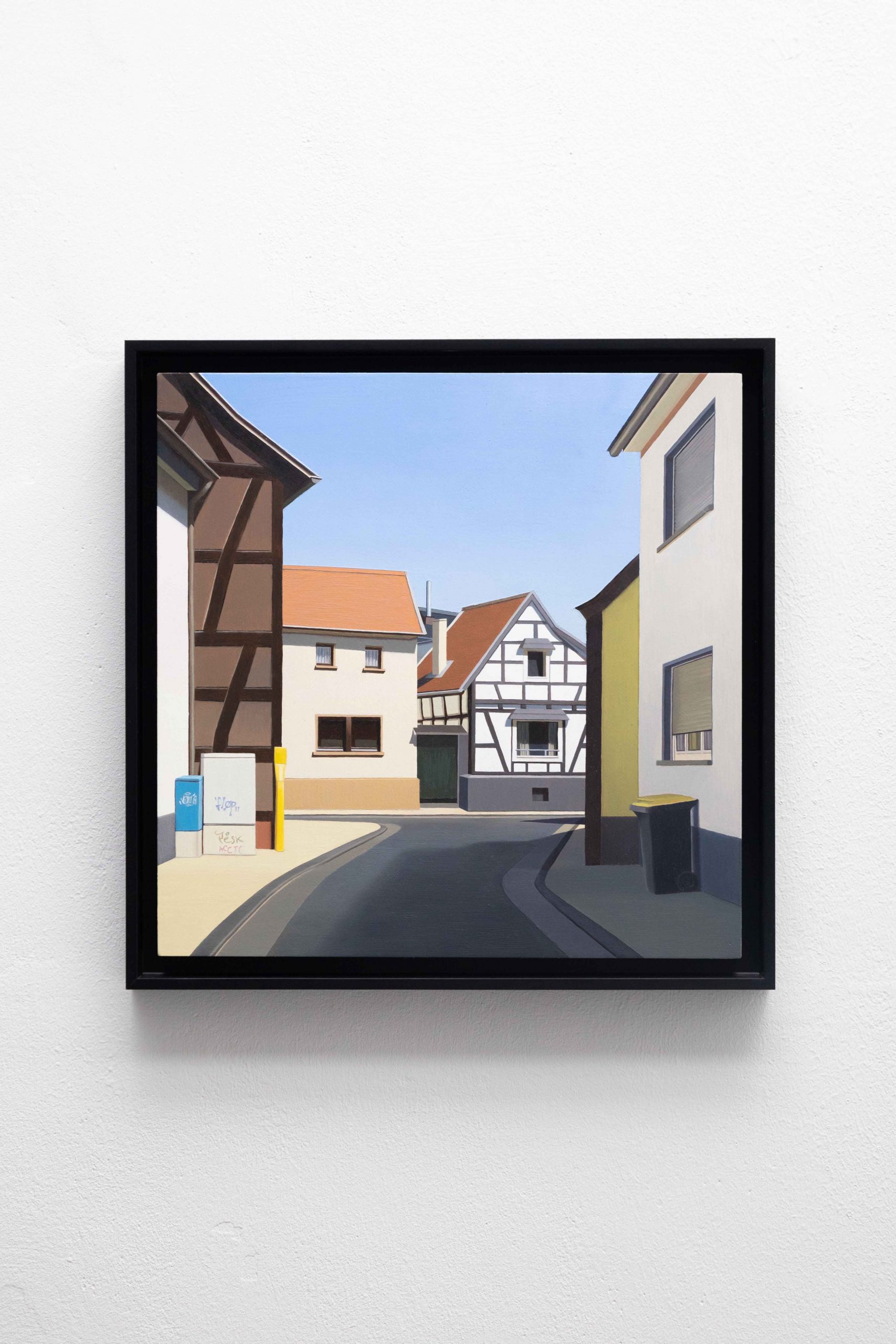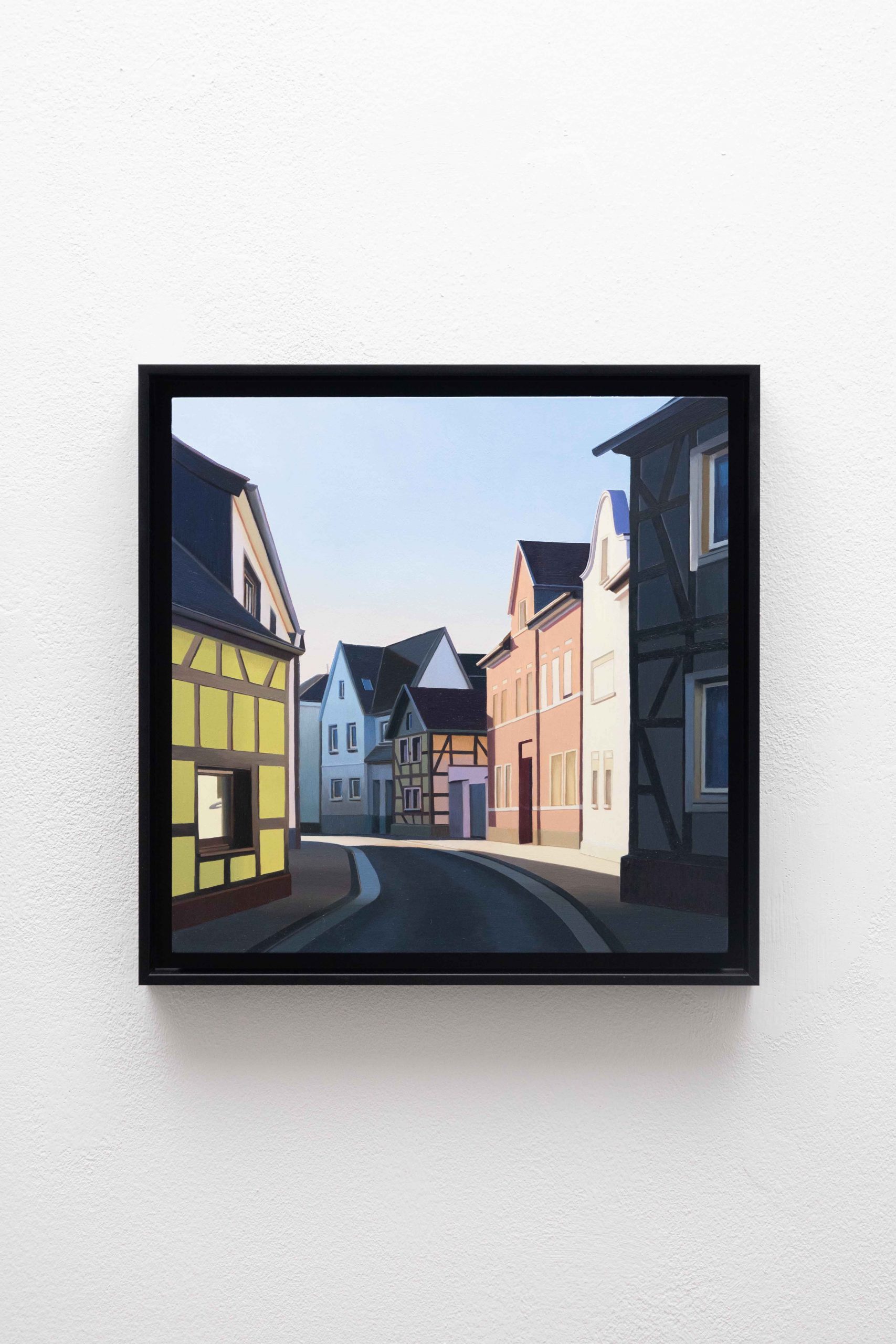 In ihrer Ausstellung zeigt Helena Jandt Malereien, die ihreunmittelbare Umgebung einfangen. Sie schafft reine Fassaden ununterbrochene Flächen; eine dünne Linie zwischen Trostlosigkeit und strahlenden Farben im Sonnenlicht.
