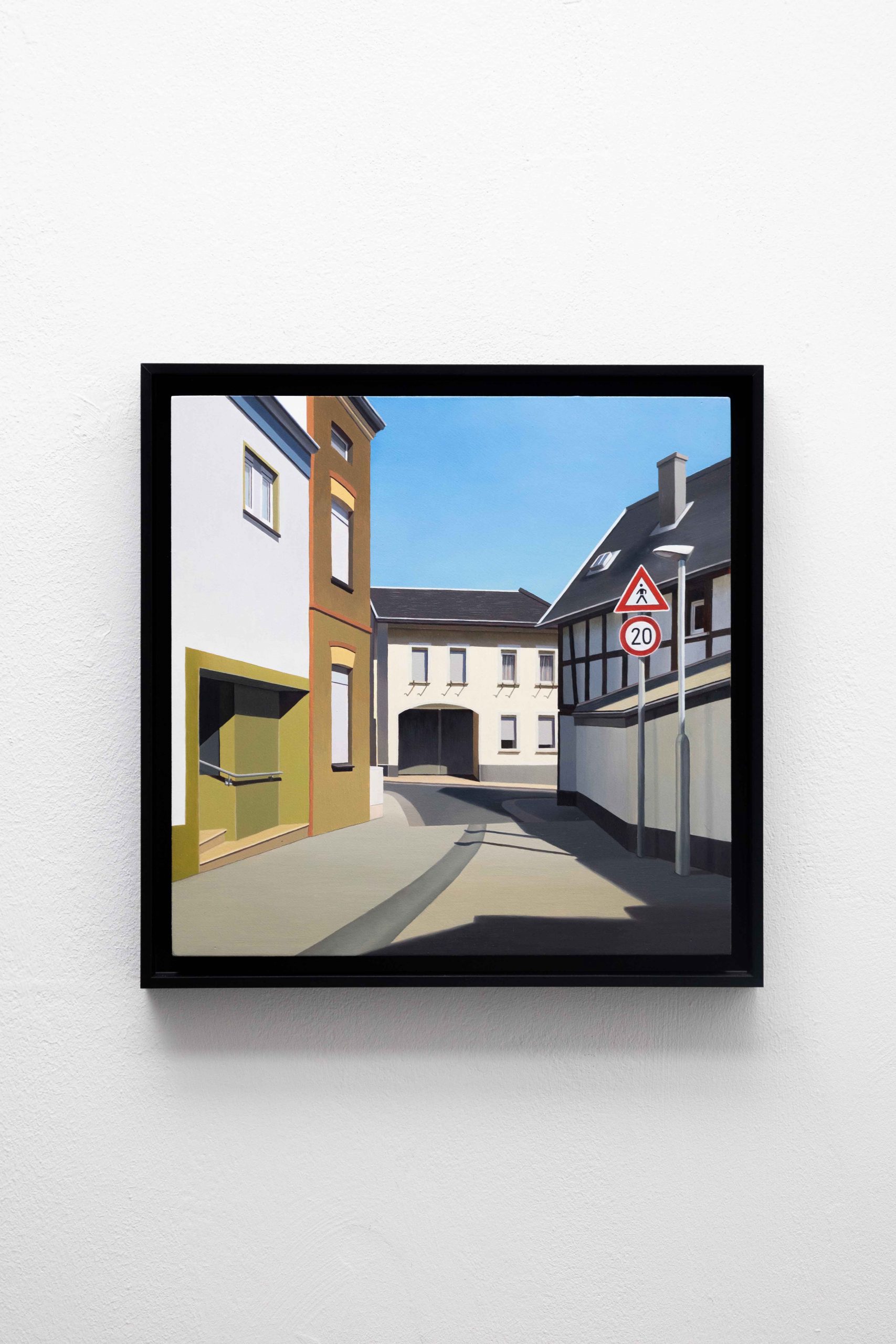 „Ich zeige meine direkte Umgebung, das was ich täglich sehe meinen Raum. Versuche meinen Blick zu beruhigen, meine Gegenwart zu zeigen. Reduzierung der Wirklichkeit. Male das was mir wichtig ist, wovon ich erzählen möchte. Es entstehenEindrücke aus Alfter, der Ort, der mich umgibt.“